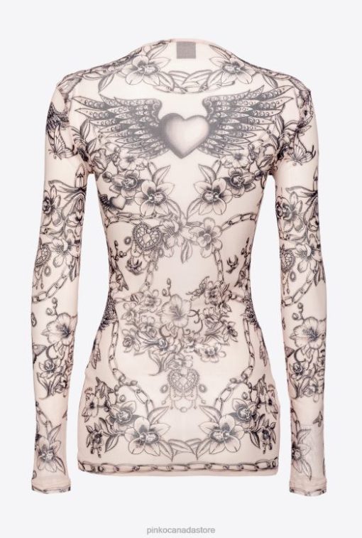 Sweaters | Long-sleeved top with tattoo print Pinko NUDE/BLACK T8J28361