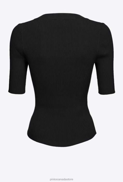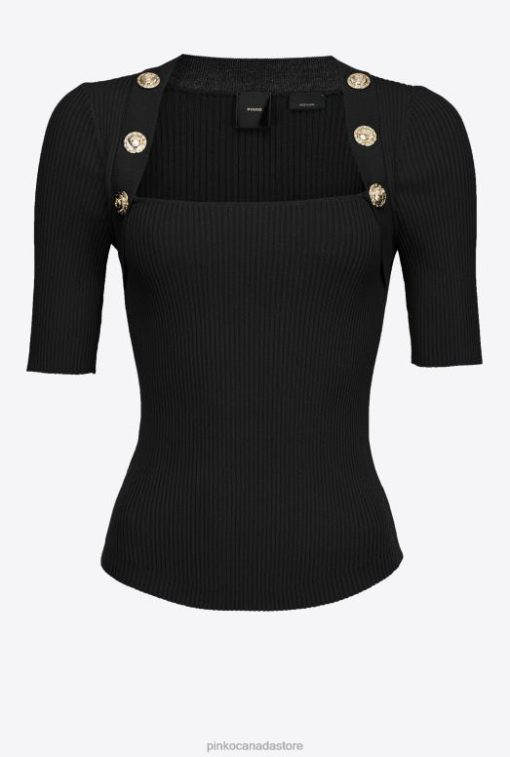 Sweaters | Rib-knit top with golden buttons Pinko LIMO BLACK T8J28492