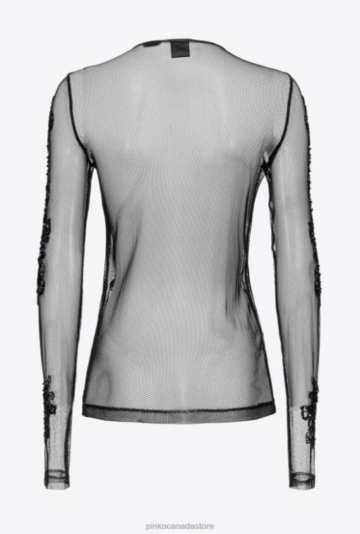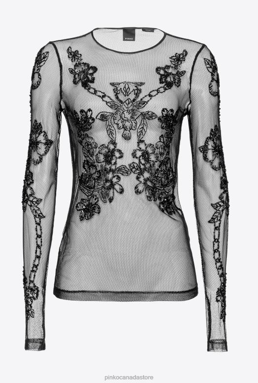 Sweaters | Tulle top with tattoo embroidery Pinko LIMO BLACK T8J28461