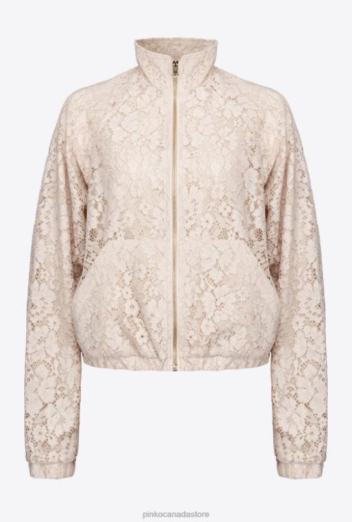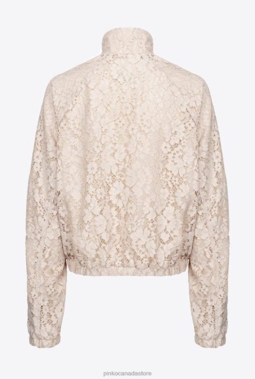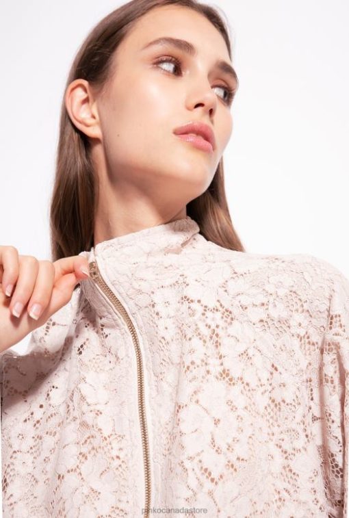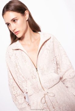 Floral lace sweatshirt with high neck and special laminated finish. Long sleeves with elastic cuff, pouch pockets at the front and elasticated hem. Lined. Metal zip fastening on the front. – Model is 177cm tall and wears a size 40.