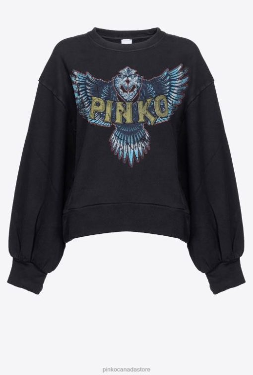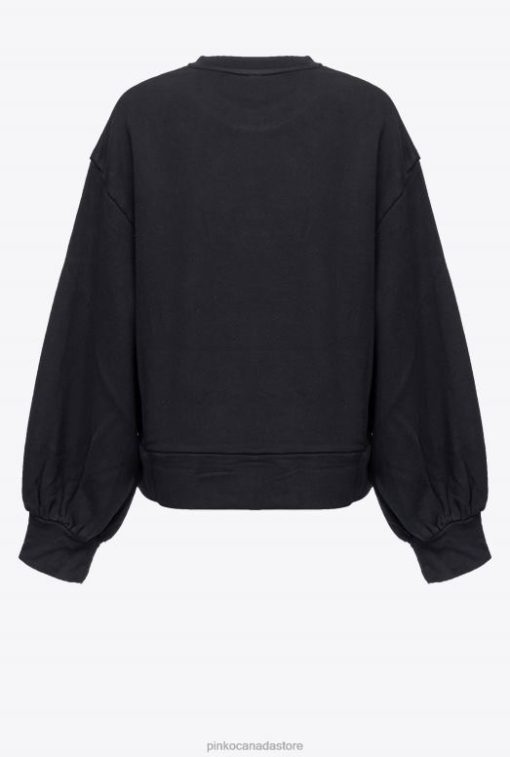 Oversized cotton sweatshirt with wing and PINKO logo print. Crew neck and long and wide low set-in sleeves.