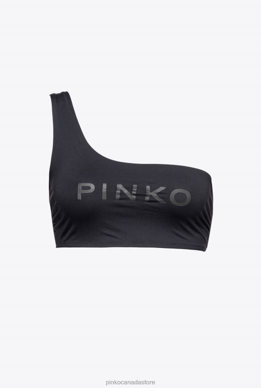 One-shoulder bikini top in technical stretch jersey, with printed PINKO logo on the front.