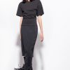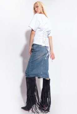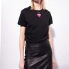 Short-sleeved T-shirt in pure cotton jersey, customised with a tone-on-tone enamelled Love Birds plaque at the bottom. There are two rows of bustier-style lacing at the back. – Model is 175cm tall and wears a size 40.