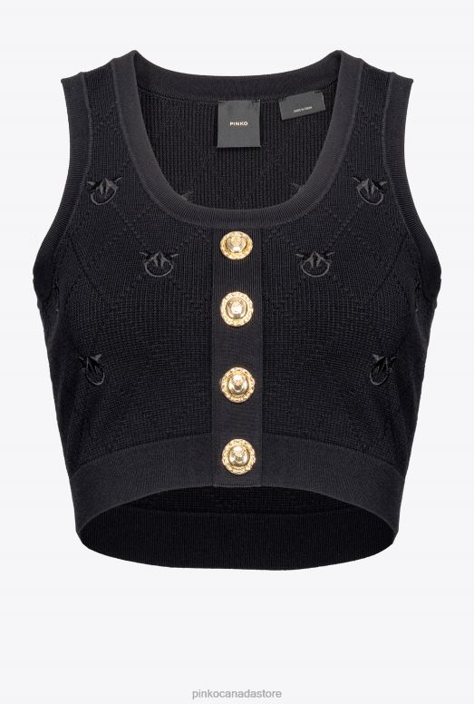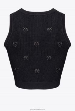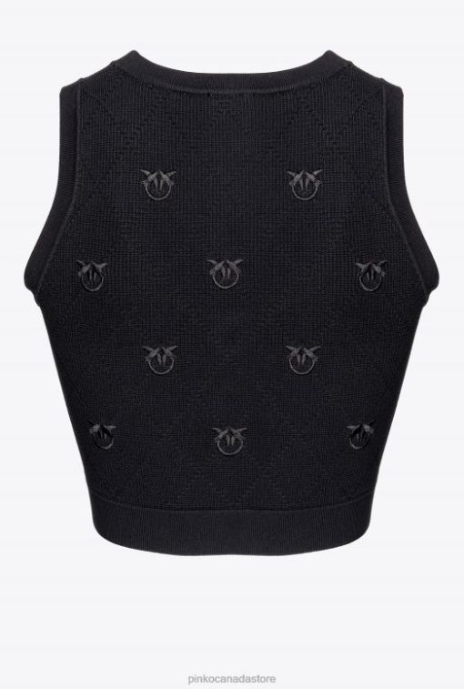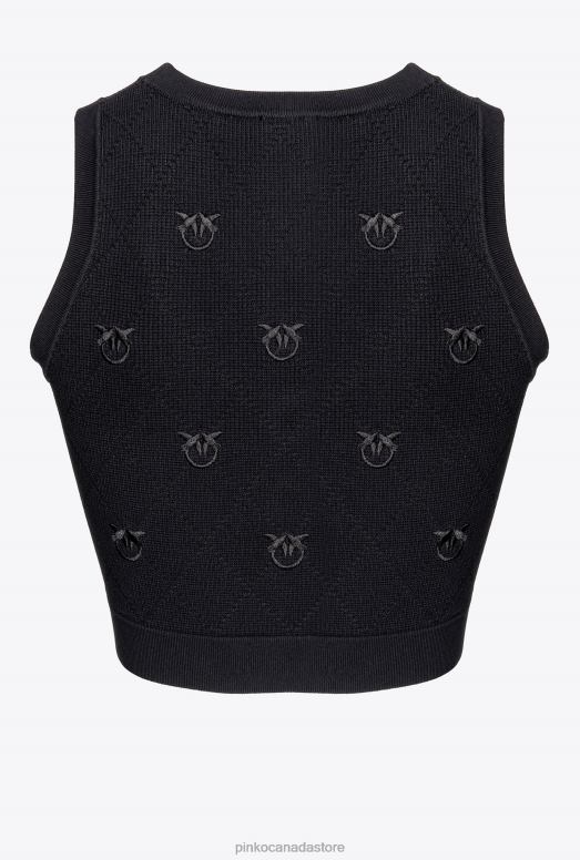 Top | Cropped jacquard Love Birds vest Pinko LIMO BLACK T8J28366