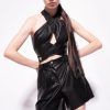 Slim-fit sleeveless top in stretch technical jersey fabric with a black and white graphic floral print. One-shoulder neckline with a cut-out effect at the side.