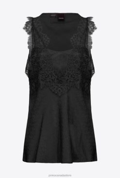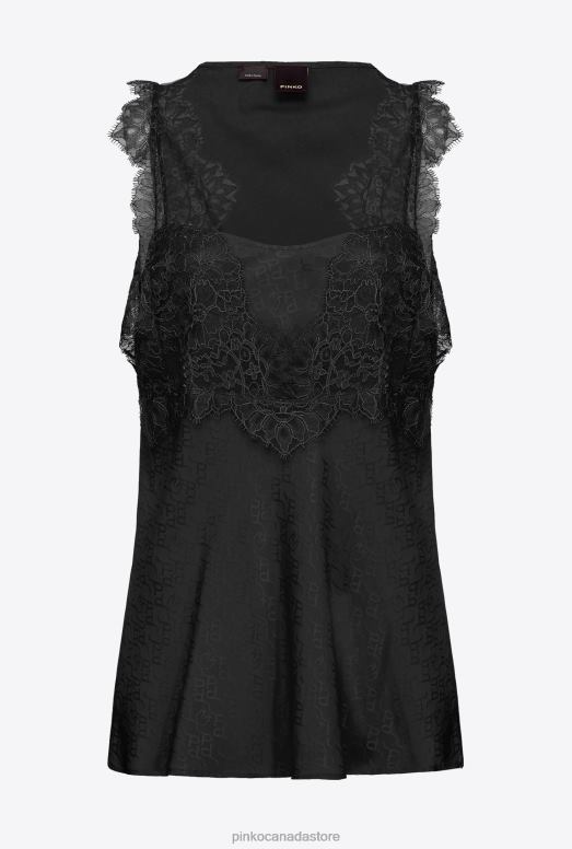 Top | Jacquard logo top with lace Pinko LIMO BLACK T8J28328