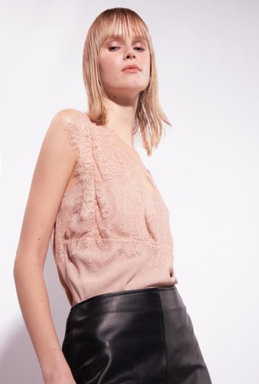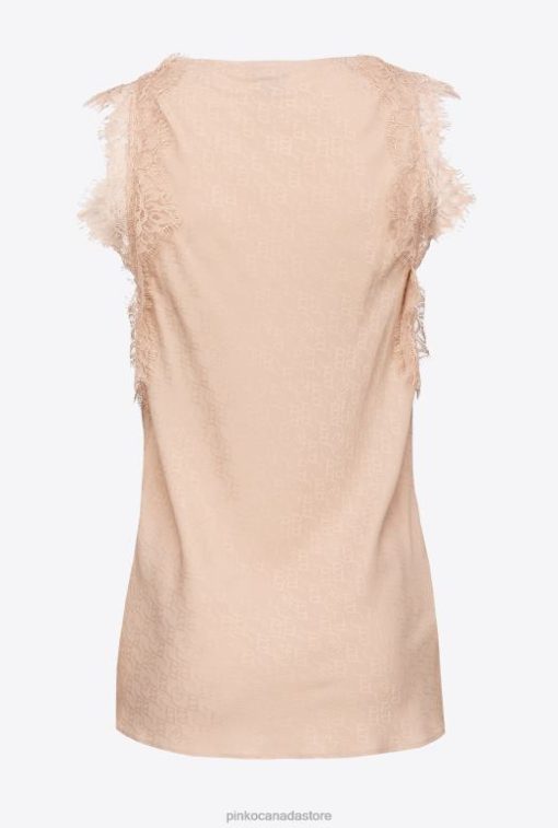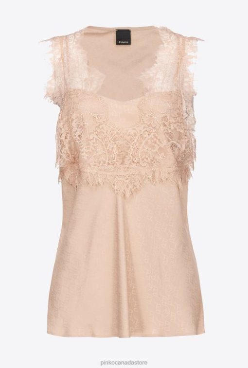 Top | Jacquard logo top with lace Pinko NUDE – ROSE T8J28327