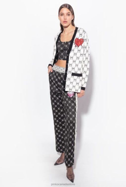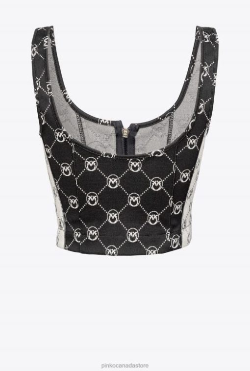 Top | Knit jacquard Monogram crop top Pinko BLACK/ECRU T8J28421