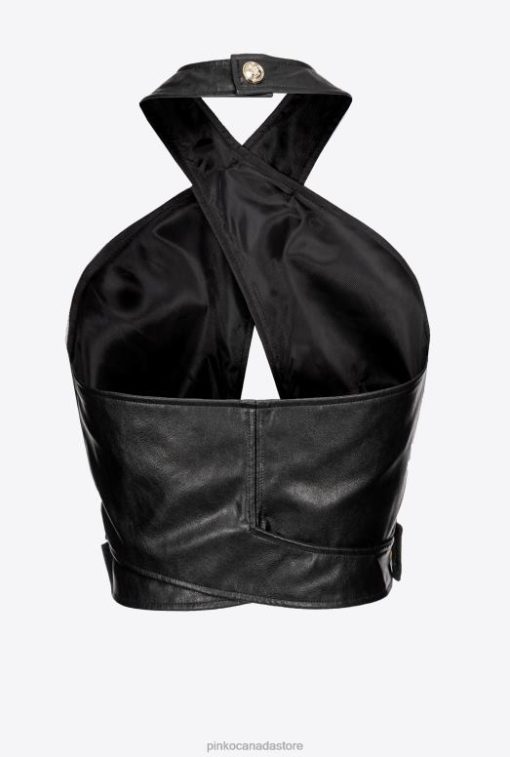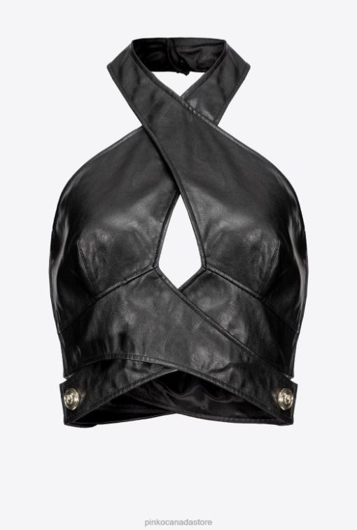Top | Leather-look crop top Pinko LIMO BLACK T8J28435