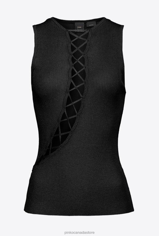 Top | Lurex rib-knit top with criss-cross detailing Pinko LIMO BLACK T8J28457