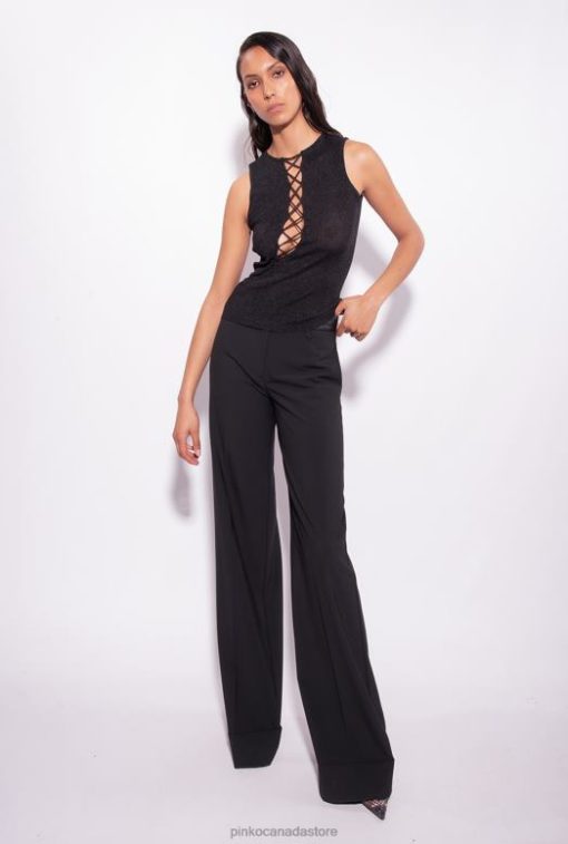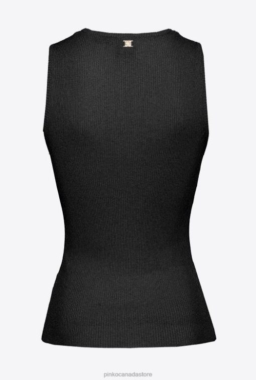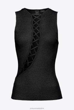 Top | Lurex rib-knit top with criss-cross detailing Pinko LIMO BLACK T8J28457