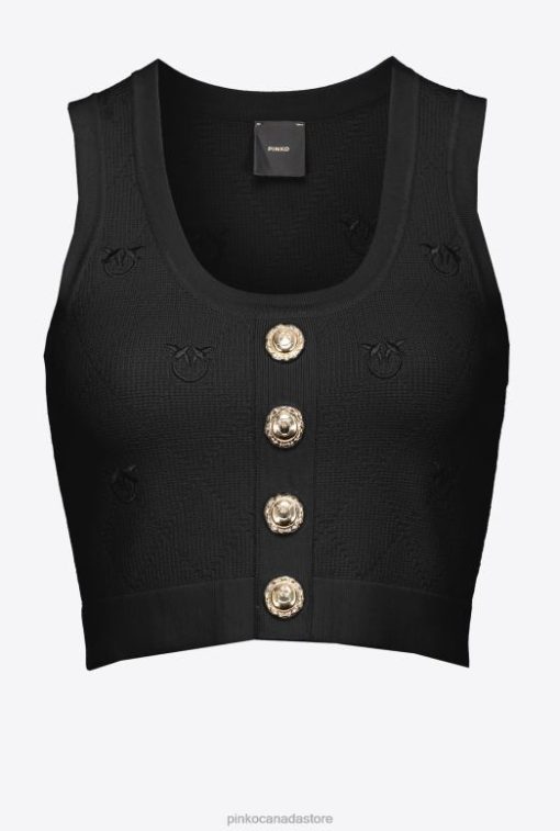 Top | Monogram jacquard crop top Pinko LIMO BLACK T8J28364