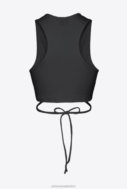 Top | Ribbed crop top with lacing Pinko LIMO BLACK T8J28466