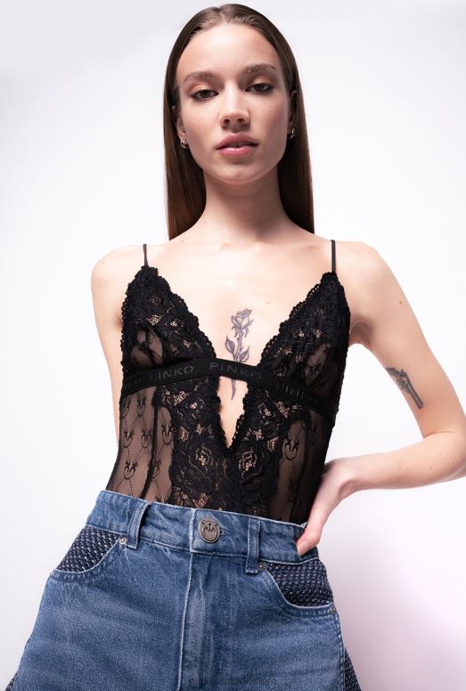 Top | Scoop-neck lace bodysuit Pinko LIMO BLACK T8J28477