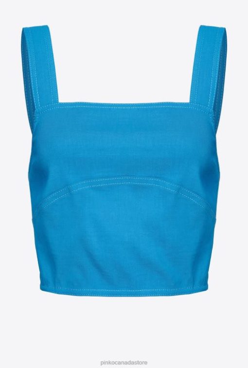 Top | Stretch linen crop top Pinko DIRECTOR BLUE T8J28449