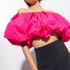 Voluminous taffeta crop top with off-the-shoulder neckline, thin straps and short maxi sleeves. Lined. – Model is 177cm tall and wears a size 40.