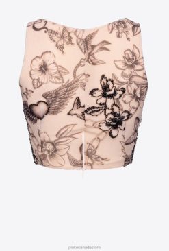 Top | Tattoo-print crop top with embroidery Pinko NUDE/BLACK T8J28468